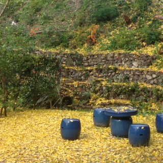 銀杏の葉が落ち、黄金のじゅうたんが!